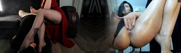 VIP4K. Dominant dark haired in dark-hued pantyhose uses big toy to impress her GF