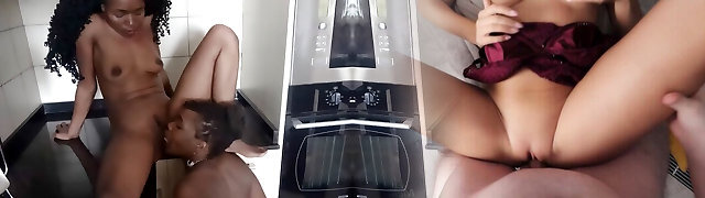 Busty African honey with a great culo gets some cream in her coffee