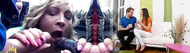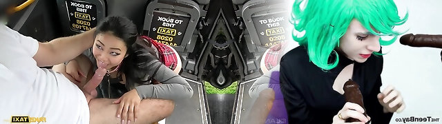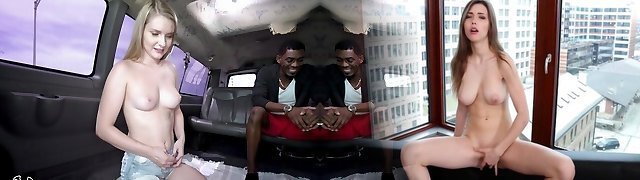 Female Fake Taxi Lady Gang gets a ride on a xxl dark-hued cock