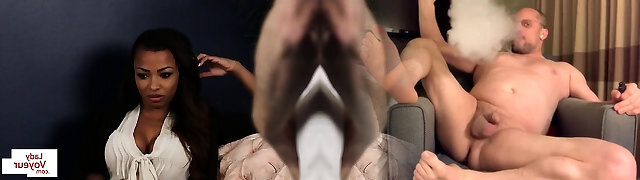 Plump white dude gets his dick pleasured by kinky ebony Kandee