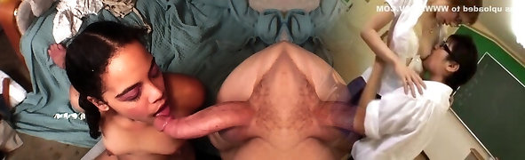 Euro CFNM nurses jerk dark-hued cock in 3way for cumshot sample