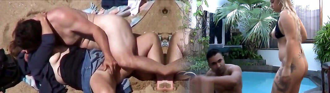 weißes mädchen wird am strand von 2 bbcs geschwärzt