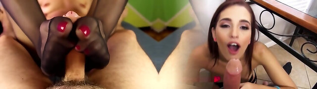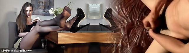 feetjob in schwarzen strümpfen - kräftiges sperma auf sohlen