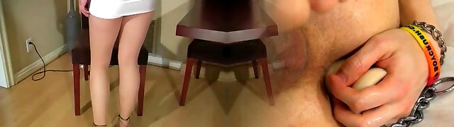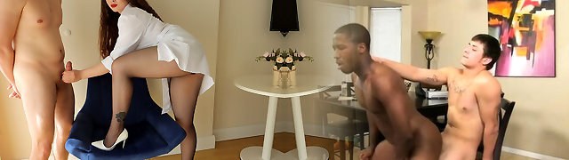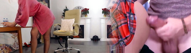 ebenholzassistentin bewegt ihren tanga und reibt ihre fleischige möse für ihren versauten chef, während er am smartphone sitzt