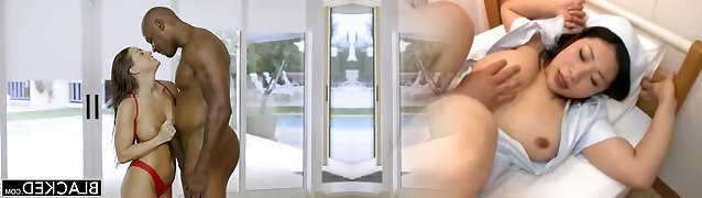 Interracial hookup with Ms Twilight - an Asian MILF whore with shaven pussy fucking with a Big Black Cock pounding her pussy