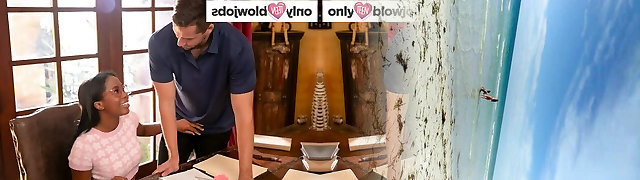 OnlyTeenBlowjobs - Nerdy Ebony Babe Gargles Her Tutor's Cock