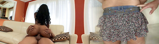 Ebony with apple bottom ass rides a giant ebony dick at home