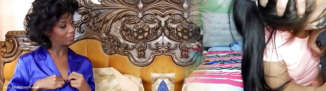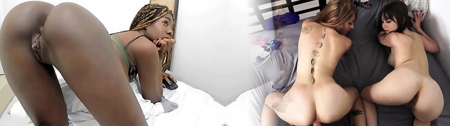 bomba frenética de pelo oscuro con culo fantástico es devorada por un chica de ébano