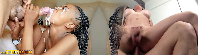 modelo de ébano amateur caliente chupa las bolas de su novio y la bbc antes del sexo