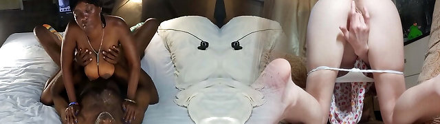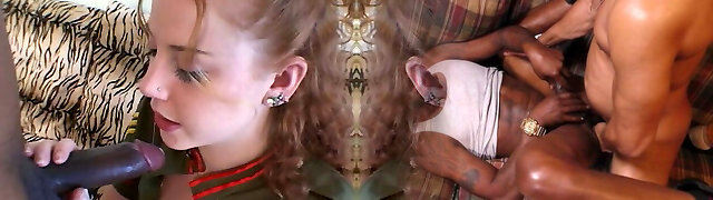 3 Black Babes Interracial Four-way White Cock Riding Facial Cum
