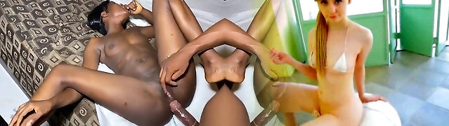 Three Dimensional cuckold! Horny young blonde fucked hard by a big ebony cock