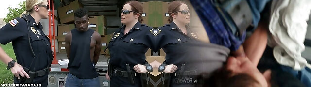 Caucasian police ladies fucks ebony scofflaw in threesome