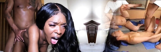 Dark Skin puny Tits Black Ebony Teenie Jazzi Lai tricked to First Interracial Group Sex