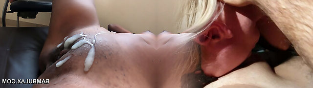 EVASIVE ANGLES She brings in a black fellow who is more than happy fingering and licking her hairy muff, until he fucks her fine and completes up providing her a blinding interracial facial.