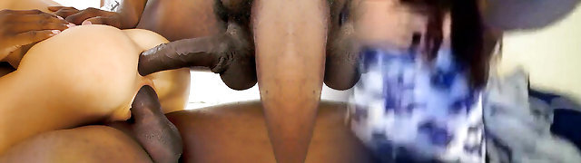 Interracial Ebony FMM Riding And Hardcore Double Penetration