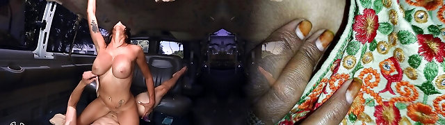 Wife Armani Black with massive orbs enjoys having lovemaking in the limo