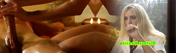 Romantic sexy blondie babe in black stuff wanks strong cock a bit