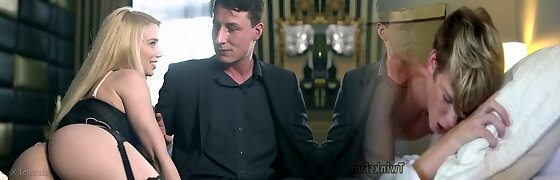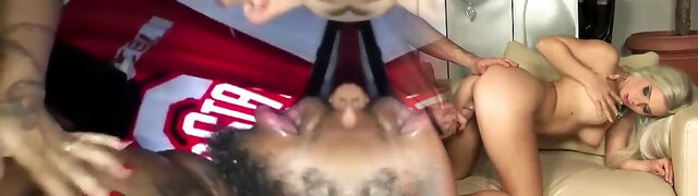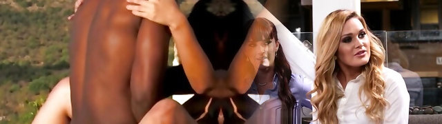 Graceful white babe Naomi Woods is fucked hard by two black fellows
