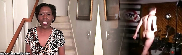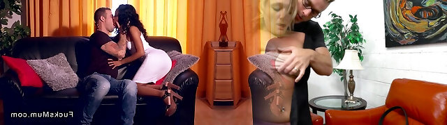 Ebony mom bangs young white spunk-pump
