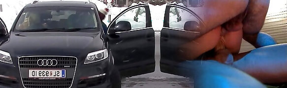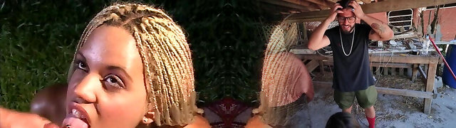Naughty big dick white guy slams a curvy ebony goddess outside