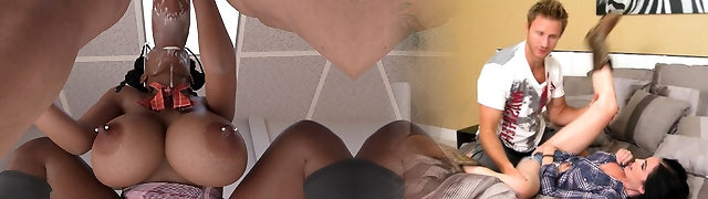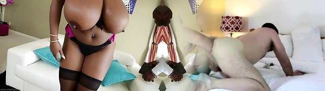 Black huge-titted chick enjoys when her shagger stiffs his huge pecker in her raw twat and taut asshole