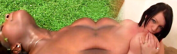 Hefty Tittied Oiled Ebony Babe Moans While Massaged And Fucked