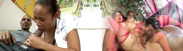 Switch Sides Gangbang - Black Dude Gets Six Girls at Same Time