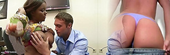 Immense Boobs Ebony Boss Candice Nicole seduce young trainee to Fuck at Office