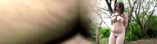 Striptease and Piss by chubby Mature naked blonde outside in the garden courtyard