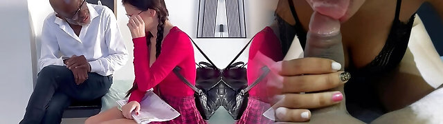 Ebony with big tits came to visit her teacher to try to seduce him and she succeeded in this