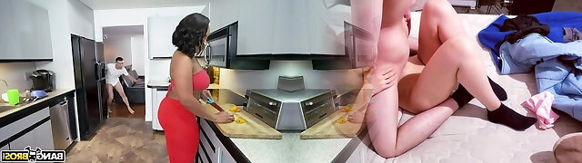 Slutty and super sexy black housewife is penetrated doggy in the kitchen